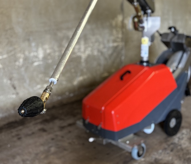 - Da biste premestili robota u željenu halu ili štalu koju treba oprati, ne sme se gurati: robot GO Cleaner ima elektromotor za samostalno pokretanje. Aktivira se jednostavnim pritiskom na dugmad za smer.